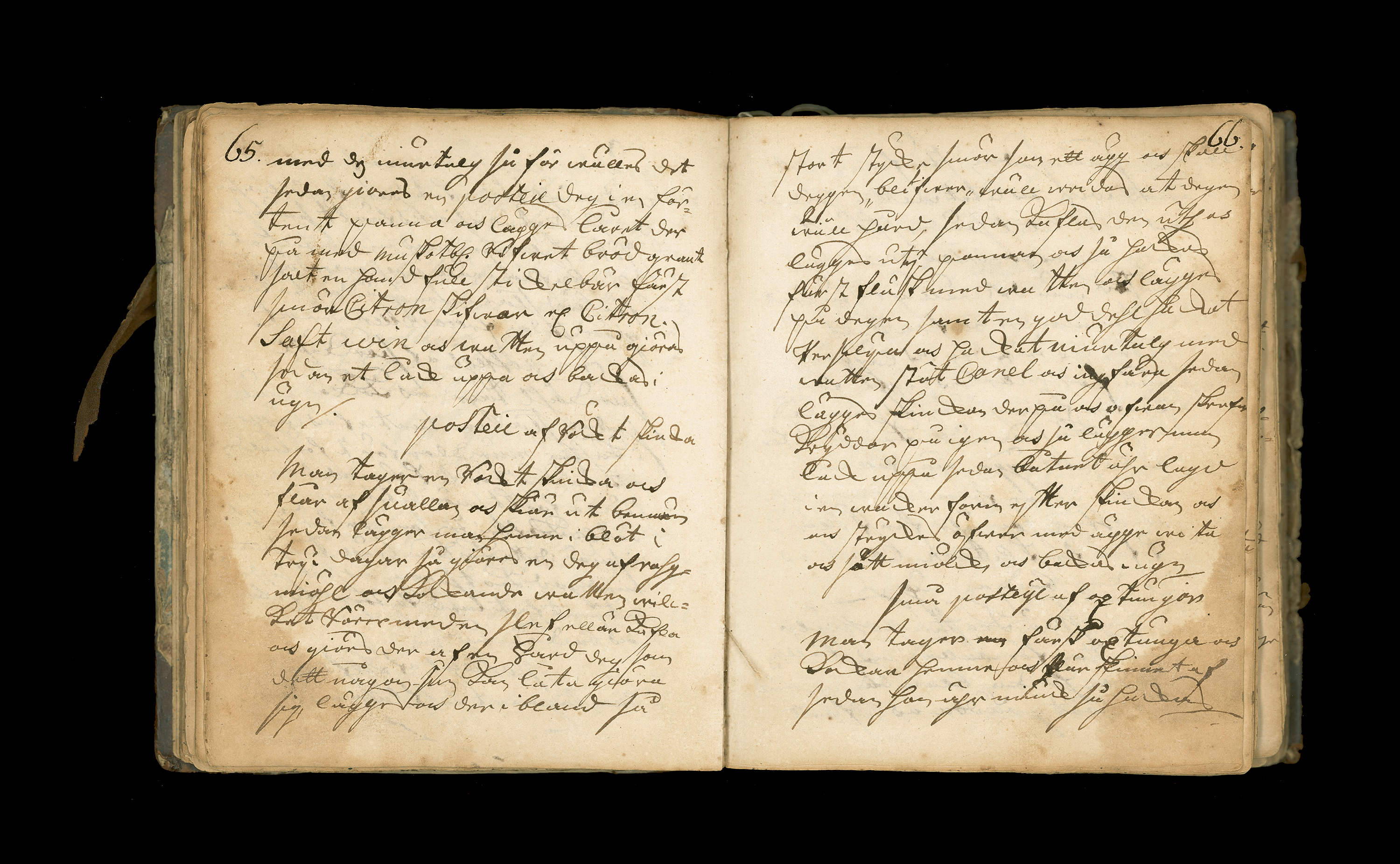 This book on good housekeeping and cooking was written for a noblewoman in Finland, Barbro Christina Hästesko-Fortuna, born in 1698. Housekeeping skills and practical advice on running a household were generally passed on from mothers to daughters in the 18th century, but for Barbro Hästesko this was not the case. After many misfortunes (orphaned at the age of four, married and widowed in her early teens, taken prisoner and transferred to Russia during the Great Nordic War), she remarried a Swedish nobleman, Johan Wentzel Rotkirch and in 1721 settled at Stensböle manor near Borgå (Porvoo) in southern Finland. Barbro Hästesko was in need of guidance in household matters, and Rotkirch wrote this cookery book for her. The origin of the recipes is unknown. Most likely the contents of the handwritten book, consisting of food and baking recipes, methods for preserving foodstuff, instructions for dyeing and cleaning textiles, and many other practical recommendations related to household maintenance – not least cures for both people and cattle – was based on oral tradition and on several kinds of both printed and non-printed sources. Others later continued the book, with additions and alterations indicating that it was used by many generations at Stensböle manor.