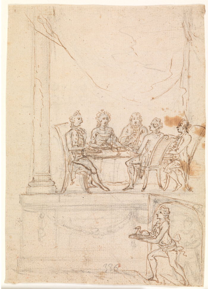 The Danish royal family dining at Hirscholm palace, by Peter Cramer, 1771. SMK