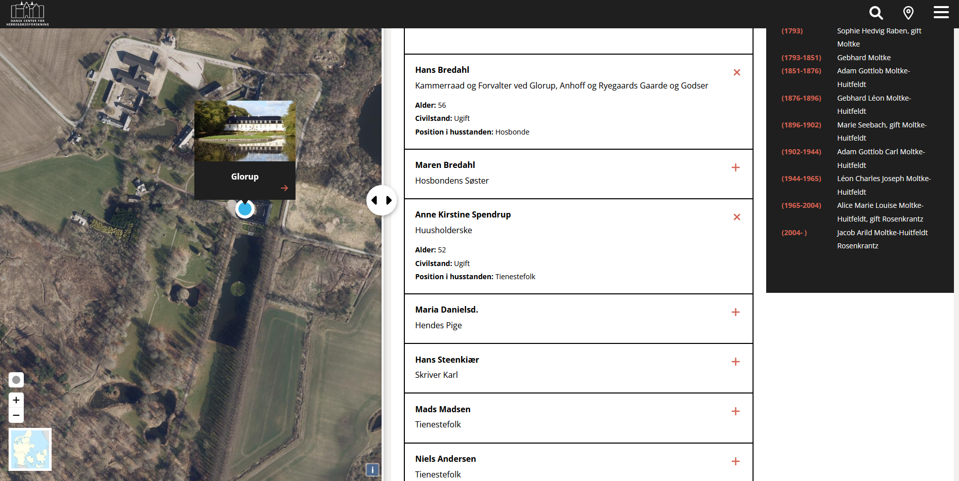 This is part of The Danish Research Centre’s ongoing work on servants and households at Danish country houses. Behind the information presented at the website is a servant’s database which is being continuously worked and expanded upon. The goal of the database is to create and overview of the scale of households, their composition including job descriptions, age groups, married or unmarried employees and variations among households across the country as well variations and changes over time. The aim is to continue making the information public on the website danskeherregaarde.dk.