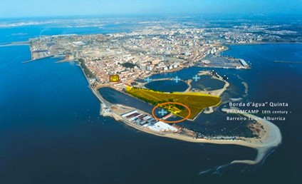 An example of an unique nineteen century landscape estate ”Quinta” in the south bank of the estuary, built in sand banks and facing the hills of the historic center of Lisbon.