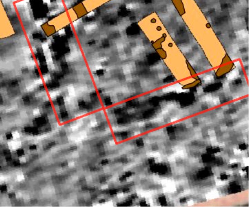 On the second of June 2025, first-year archaeology students from Aarhus University started digging on this site during their training excavation until 20 June 2025. Six trenches have been dug based on the distribution of brick fragments, cadastral maps and magnetometry. The latter is a non-destructive archaeological method which records changes in the Earth’s magnetic field, caused by archaeological contexts hidden in the soil. Since red bricks contain trace amounts of iron, they showed up on a magnetometric scan, suggesting a possible outline of structures on the site.