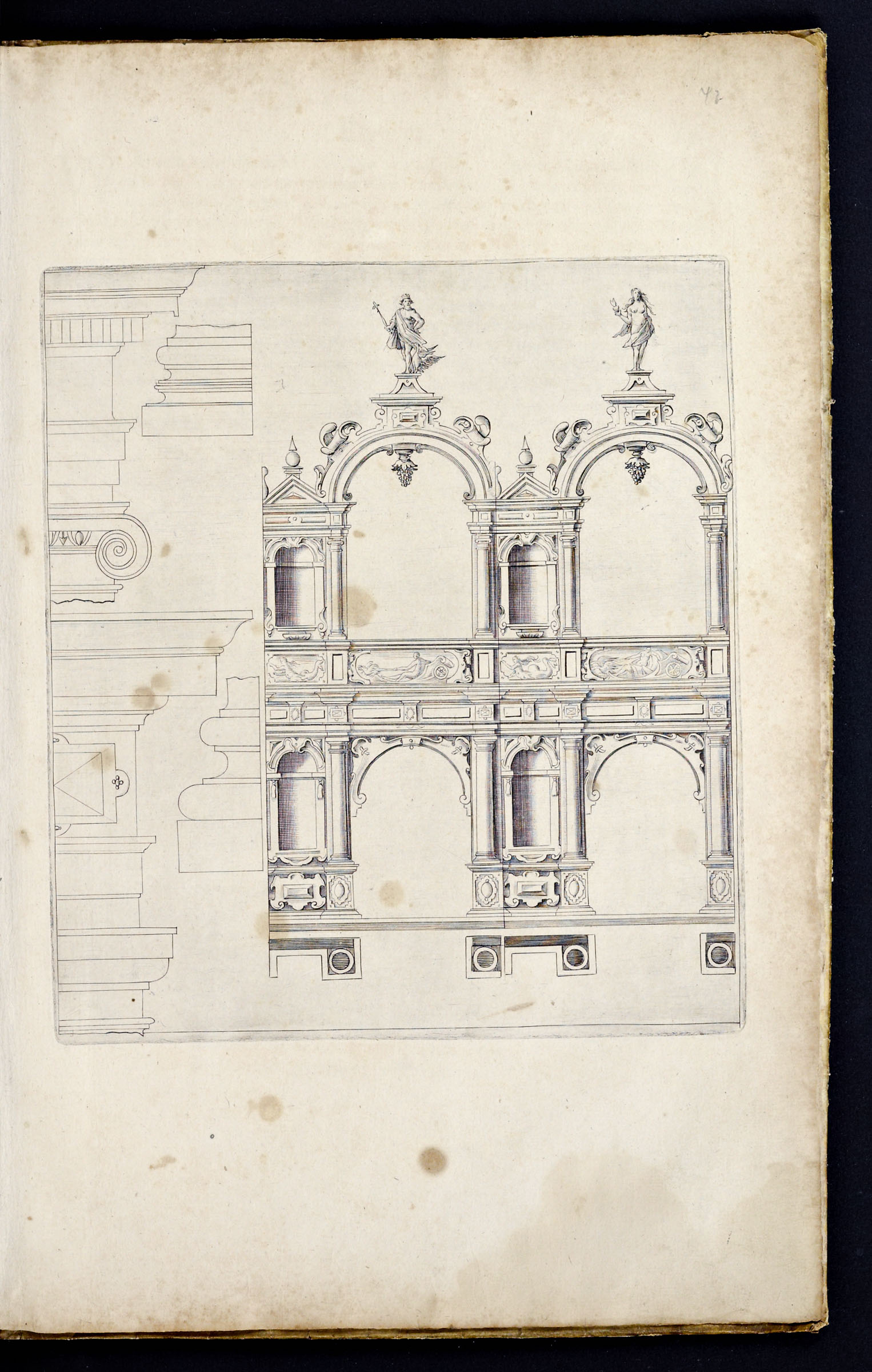 Steenwinkel’s design for the gallery in the book on de Keyser and his apprentices’ works from 1631, “Architectura moderna ofte bouwinge van onsen tyt”.